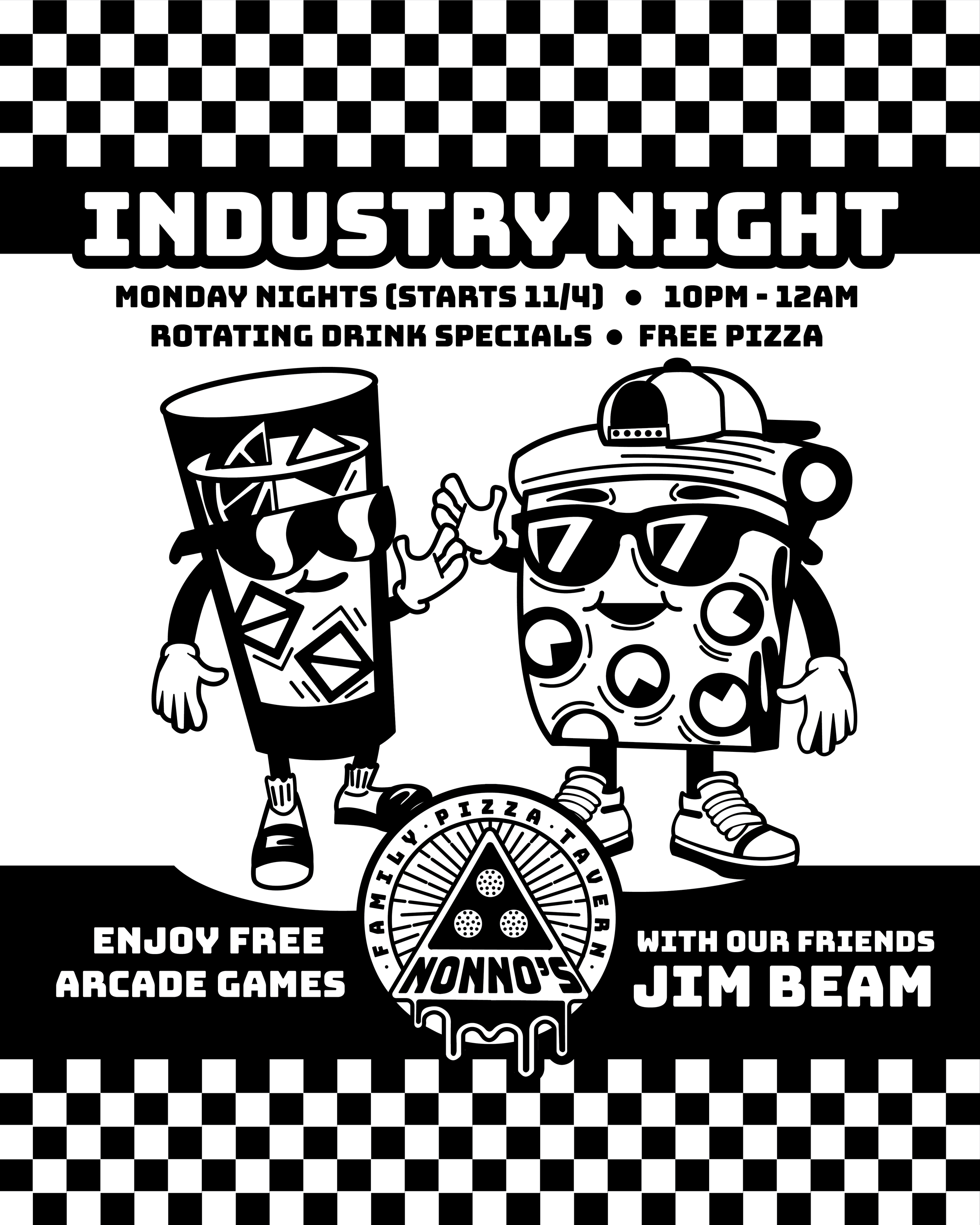 Industry folks, we want more friends and we wanna hang. So how are we doing that? Making sure you get new drink specials every Monday, along with free pizza AND free arcade games. We trust that you’re industry, so just show up between 10pm-12am, and we’ll make some pizza party magic happen!